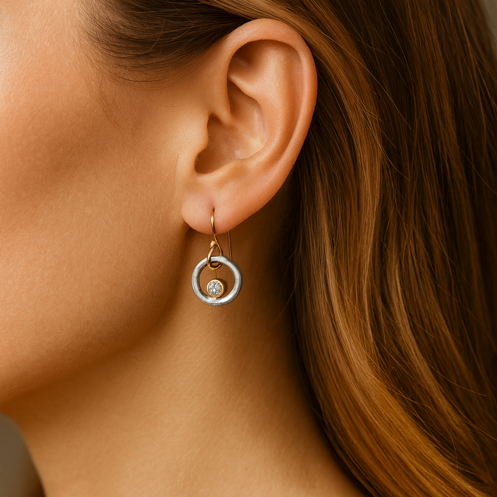 • Design: Retro-inspirované kruhy s třpytivým krystalem